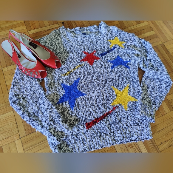 Vintage Sweaters 8s Shooting Star Rad Sweater Primary Color Pullover Wool Free 980s Vintage Poshmark